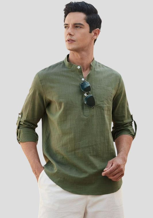 Army Green Linen Solid Short Kurta-50843