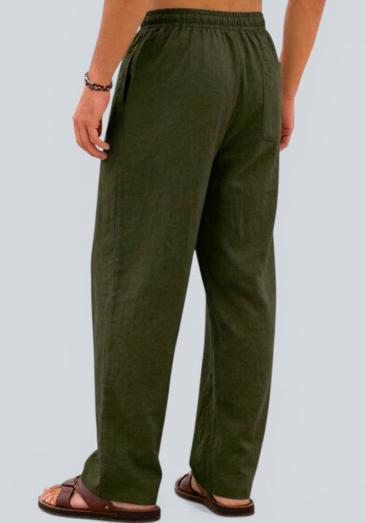 Army Green Premium Linen Relaxed Fit Loose Fit Men Pant-50872