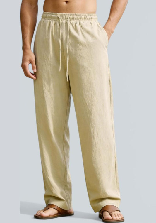 Beige Premium Linen Relaxed Fit Loose Fit Men Pant-50876