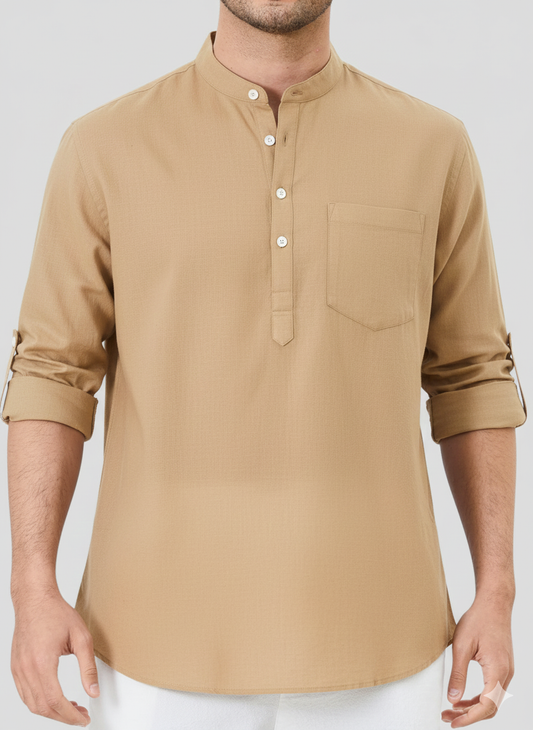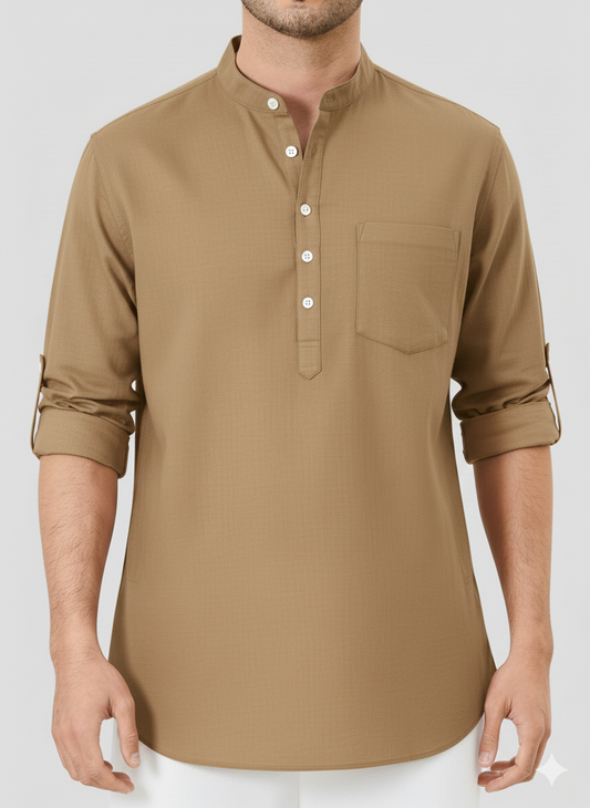 Dark Beige Linen Solid Short Kurta-50846