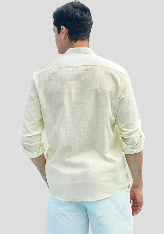Light Yellow Linen Solid Short Kurta-50842