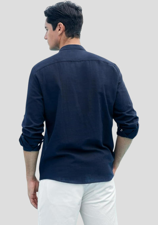 Navy Blue Linen Solid Short Kurta-50840