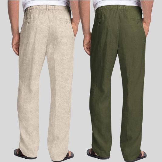 Combo of 2 Beige and Army Green Linen Men Pants-47407