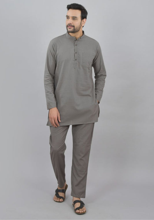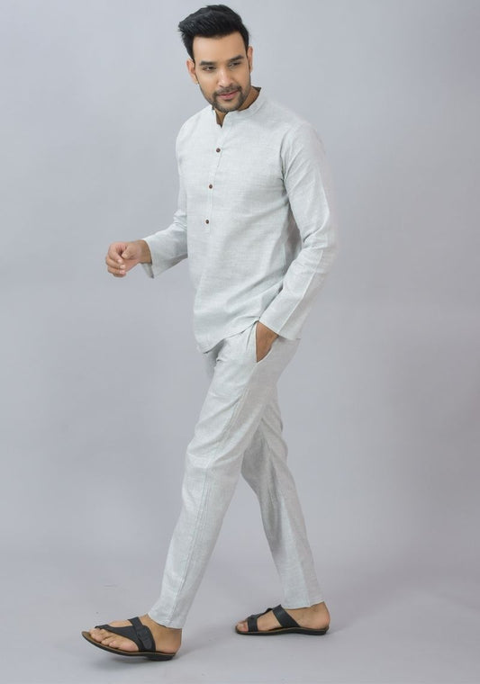 Men Cotton Solid Co-ord Set Light Gray-46676
