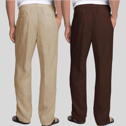 Combo of 2 Light Brown and Brown Linen Men Pants-47427