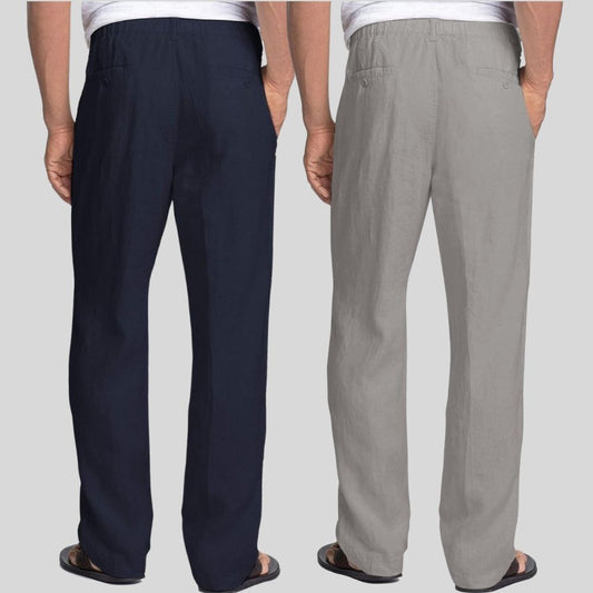 Combo of 2 Gray and Navy Blue Linen Men Pants-47458