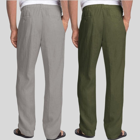 Combo of 2 Light Gray and Army Green Linen Men Pants-47461