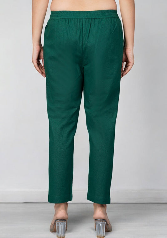 Bottle Green Cotton Pant-49199