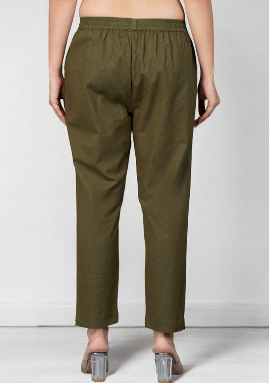 Bottle Green Cotton Pant-49199